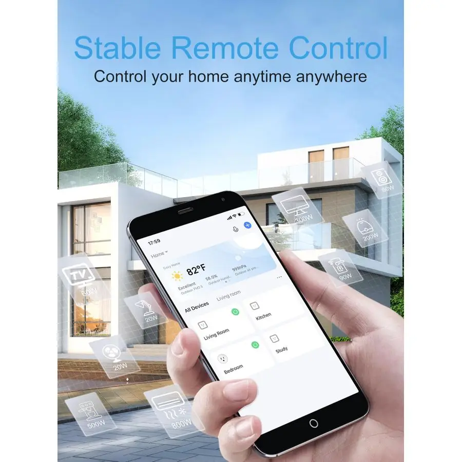 Turn your electronics on and off anytime, anywhere. Whether youre at home, at the office, or on vacation, you have full control of your home appliances easily with our smart outlet.